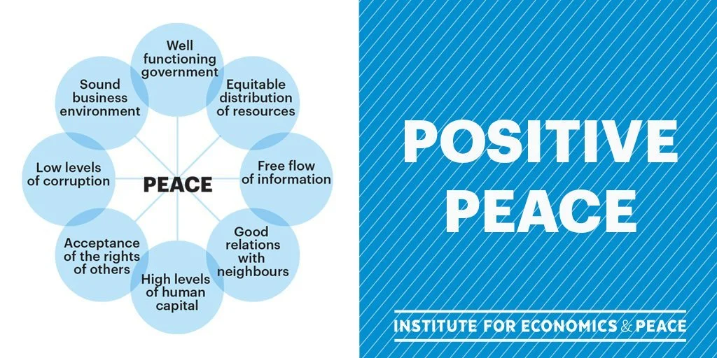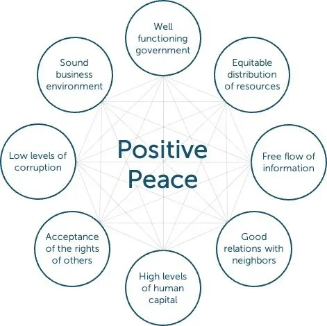 IEP-এর দৃষ্টিভঙ্গি: ইনস্টিটিউট ফর ইকোনমিকস অ্যান্ড পিস (IEP) এই দর্শনকে আধুনিক ডেটা সায়েন্সের সাথে যুক্ত করেছে। তাদের মতে, পজিটিভ পিস হলো একটি সমাজের "রোগ প্রতিরোধ ক্ষমতা" (Immunity)। শরীর সুস্থ থাকলে যেমন রোগ আক্রমণ করতে পারে না, তেমনি পজিটিভ পিস শক্তিশালী থাকলে সমাজে সংঘাত দানা বাঁধতে পারে না।