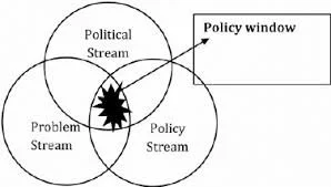 জন কিংডন (John Kingdon) ব্যাখ্যা করেছেন যে, একটি পলিসি তখনই অগ্রাধিকার পায় যখন তিনটি 'স্রোত' (Streams) এক বিন্দুতে মিলিত হয়। মন্ত্রী এই ফ্রেমওয়ার্ক ব্যবহার করে দেখেন কোন পলিসিটির জন্য "Policy Window" বা সুযোগের দরজা খোলা আছে: